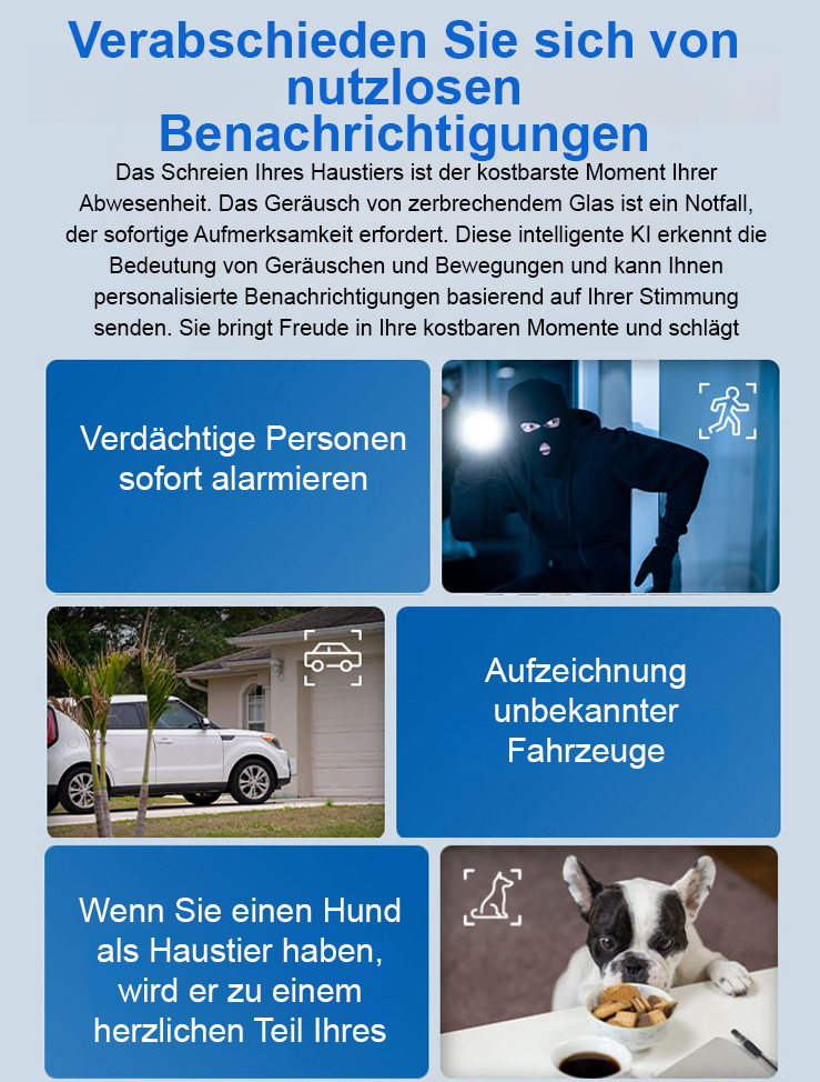 🔥 Genieße bis zu 90 Tage Akkulaufzeit, intelligente KI-gesteuerte Bewegungserkennung mit Alarmfunktion und 24/7-Echtzeitüberwachung direkt über dein Smartphone.