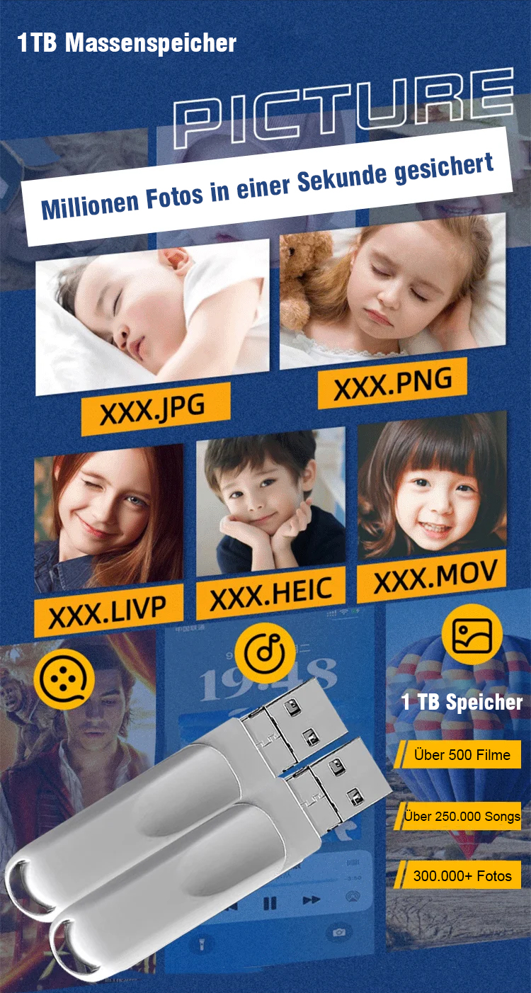 ⚡Militärstandard 64TB SSD | 550 MB/s | IP68 & AES-256 geschützt. 4-in-1 USB-Stick zur Speichererweiterung für Mobiltelefone