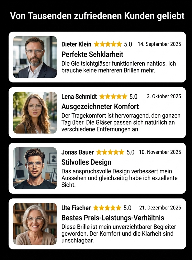 🔥 Die revolutionäre Brille aus der Optik-Stadt Jena, gemeinsam entwickelt von Spitzen-Ingenieuren und Berliner Augenärzten: Sofort tragbar ohne Sehtest, scharfe Sicht bei Kurz- und Weitsichtigkeit, für eine klare Sicht wie mit 20. 🛡️ 30 Tage kostenlos testen + 10 Jahre Garantie.