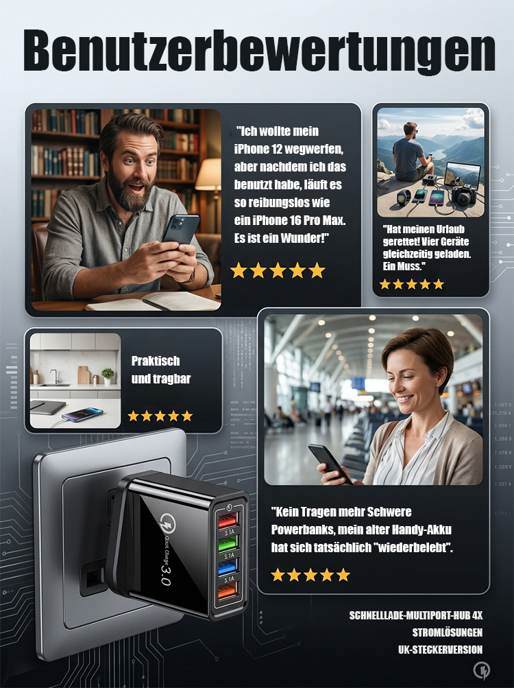 【Verbessern Sie die Akkulaufzeit Ihres Handys】Vierfacher Reise-Ladegerät
